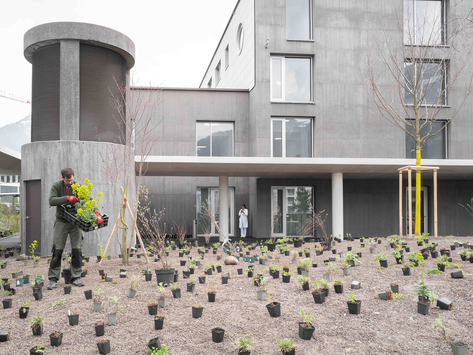 Planting work for the final phase of construction at Uri Cantonal Hospital