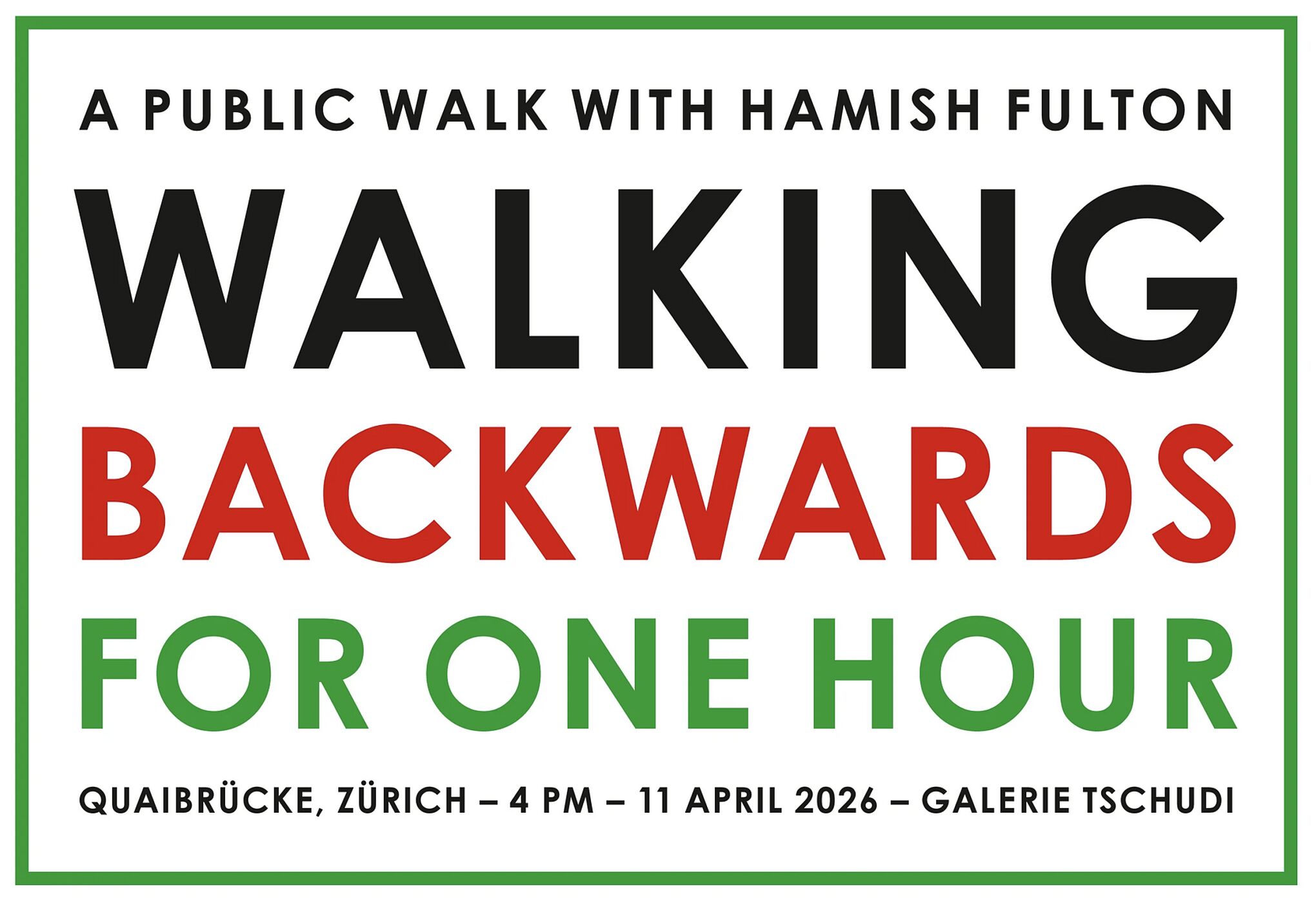 Gallery owner Elsbeth Bisig and Hamish Fulton, Photo: Daniel Ganz, Zurich Walking backwards for one hour, Quaibrücke/ Zurich, Photo: Daniel Ganz Talk with Céline Eidenbenz and Hamish Fulton, Photo: Daniel Ganz, Zurich